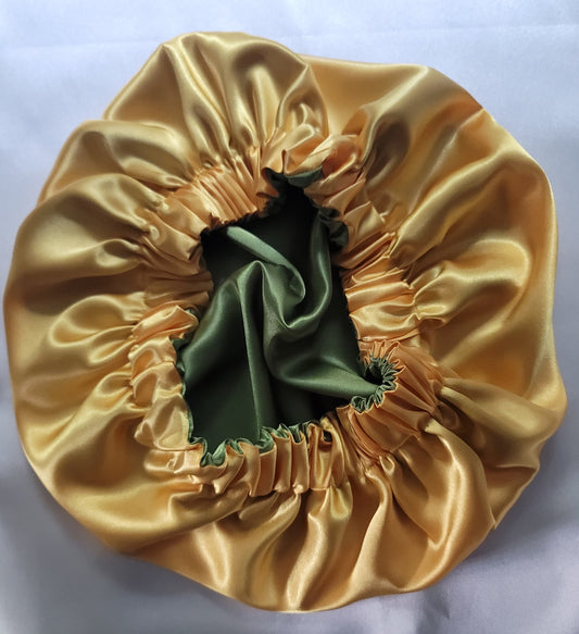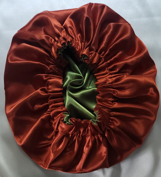 Dark Olive/Burnt Orange Charmeuse Satin Bonnet